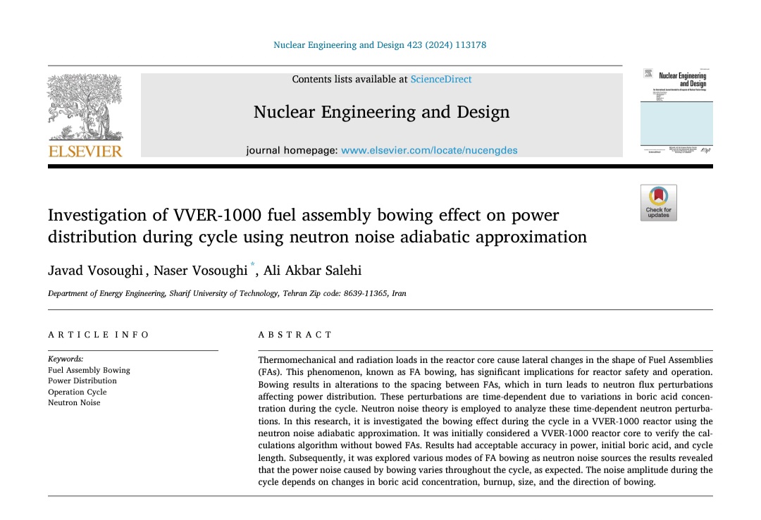 چاپ مقاله علمی پژوهشی در مجله معتبر Nuclear Engineering and Design